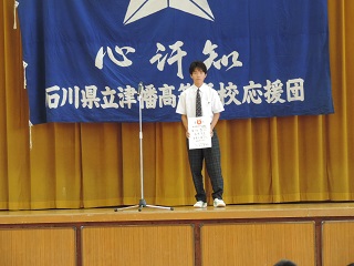 生徒会の報告会、インターハイ壮行式、離任式、終業式が行われました。