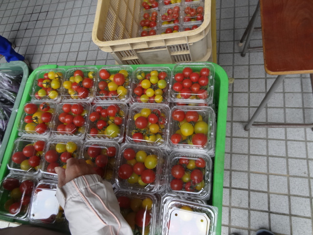 本日の正午まで生徒玄関前にて農産物の販売をしております。