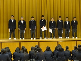 終了後、新人大会等で入賞した部より報告会が体育館で行われました。