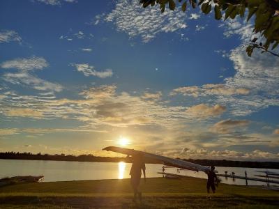 ↑ 日差しも和らぎ,秋晴れのボート日和晴れ