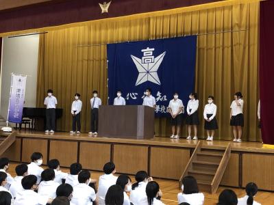 始業式 山本校長の話 インターハイ3位 辻ななるさん 短時間で行われた避難訓練