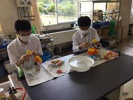 授業は「フラワーデザイン」です。総合学科の生徒が選択できる科目です。