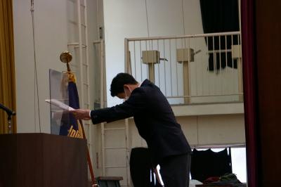 向会長より歓迎の言葉をいただいた後、入会の挨拶を卒業生を代表して若崎晴斗君が述べました。