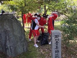昨年度は、5月末まで県内一斉休校ということで開催できなかったのですが、今年度は「生徒会」「サッカー部」「園芸(農蚕)部」+有志ボランティアが参加し、合計28名で活動を行いました。