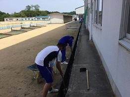 晴天の下、全校生徒による校舎外清掃が行われました。