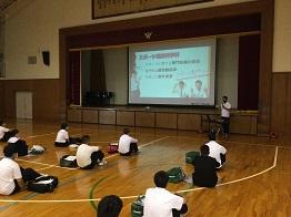 まずは視聴覚室で山本校長の挨拶からスタートです。