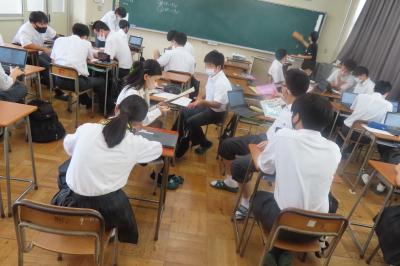 3日間実施した職場体験のお礼状と報告会を行いました。