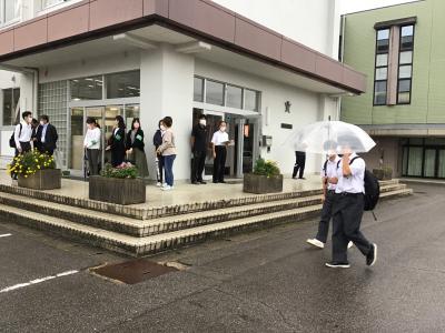 9月21日(水)朝の登校時、生徒会役員、北斗隊(前期公安委員)、教職員、PTA役員の皆様の参加により、あいさつ励行指導、交通マナー指導、自転車鍵かけ運動を4カ所に分かれて行いました。小雨の降る中、忙しい時間に参加ご協力いただきありがとうございました。