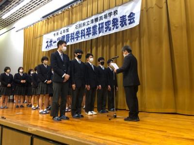 また、1月24日には寺井高校で代表生徒の発表を行いました。