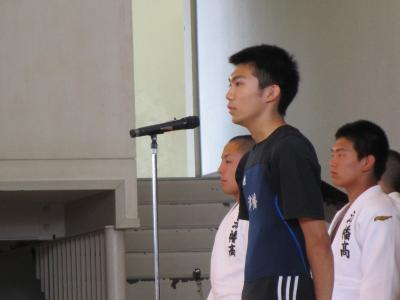 生徒会 東大吾君から激励の言葉 続いて釜田学校長より激励の言葉