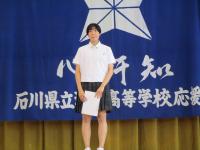 全体の説明の後、生徒会執行部の生徒が津幡高校のイチオシについて紹介してくれました。