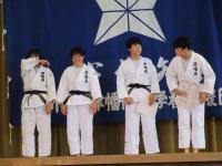 ○生徒会会計 浅井さんより激励  ○釜田学校長より激励     ○柔道部主将 堀さんより謝辞