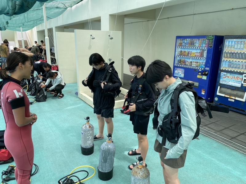 スクーバダイビングの資格取得に向けて明日から始まるプール実習、海洋実習に頑張りたいと思います!沖縄の自然、文化、環境の中で、集団生活の大切さやマナー等もしっかり学びたいと思います!明日からは天候にも恵まれそうです