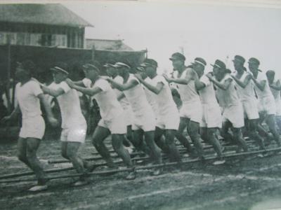 大正14年(1925)9月13日、津幡第二社会体育場で、第1回の運動会が実施されている。リレー、バスケットボール投、走幅跳、走高跳、などが行われた。一方運動会は、年々近代化、戦時化され、昭和10年(1935)頃より、仮装行列、弾薬運搬、資源獲得、長期建設という、軍事色豊かな種目へ変更している。