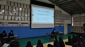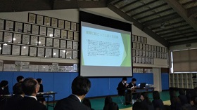 ※今日はクラス内での発表でした。2月20日(木)に、クラス代表が1年生全体の前で発表する予定です。