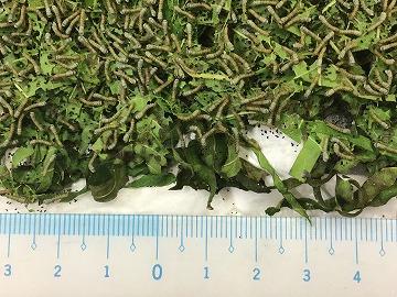 ※写真は、本日の蚕の様子ですが、あまり昨日、一昨日と代り映えしませんね(笑)