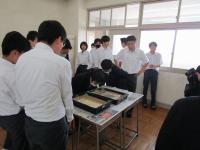 ●届いた蚕を養蚕部の池田君(3年)と顧問の大丸先生で箱から当面のすみかに丁寧に移します。蚕の成長とともにすみかも大きくなっていきます。