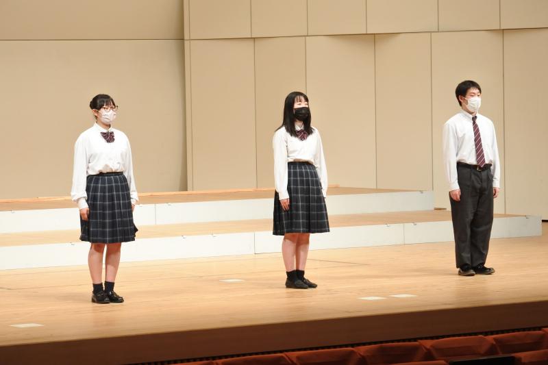 参加校の中で最少人数でしたが、3名で「さびしいカシの木」「正解」の2曲を堂々と歌い上げました。