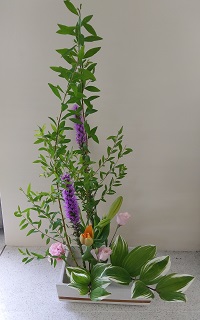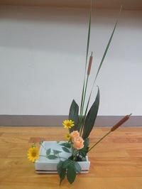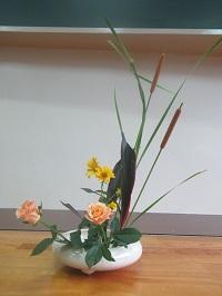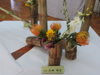 本年度3年生は、講師の先生のご指導の下、竹を材料とした自作の花器を使いました。道具を使って竹を加工するという体験もでき、また、本当に素敵な花器を使っての素敵な作品を展示することができ、また、たくさんの方に見ていただけて幸せでした。