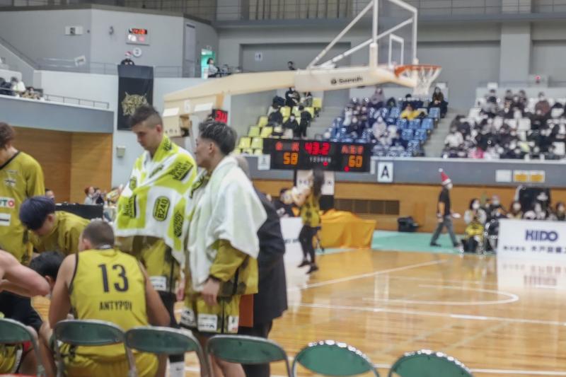 4ピリオド、残り4分台で、金沢武士団リードを奪いました。相手、タイムアウト。