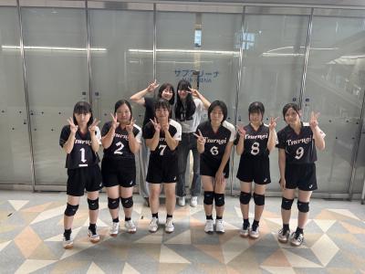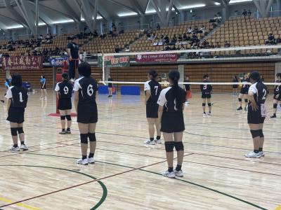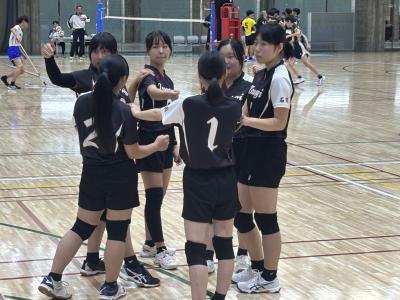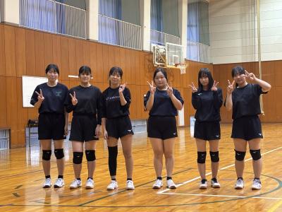 8月、最終週に大会がありました。3年生2人とバスケ部のマネージャーに力を借り、なんとか6人で試合に出場することができました。対戦相手は桜丘高校でした。新しいメンバーとなり、夏休み1か月練習してきたことは、セッターがボールを触った後の動きやセンターの動き、基本的なフォーメーションの動きをしてきました。この短期間ではどうしても技術が育たずシステムを作っても攻撃まで到達せず、今回のチーム作りはとても難しかったなという感想です。そんな中、数回しか参加できなかったバスケのマネの子はサーブを決め、楽しむ姿は嬉しい成果でした。