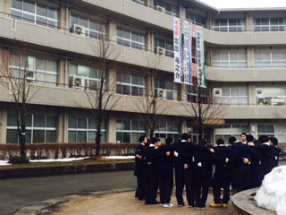 また、校舎の前にも懸垂幕が飾ってあります。たくさんのバックアップがあり、この場に立つことができています。