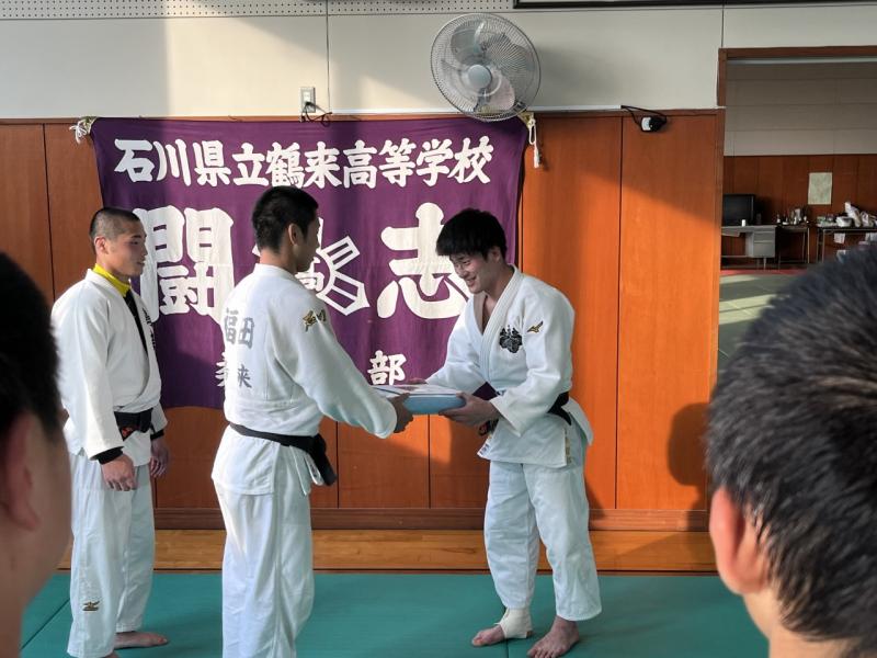 鶴来高校柔道部員であったことに誇りを持ち、これからの道を逞しく生きてほしいなと思います。