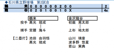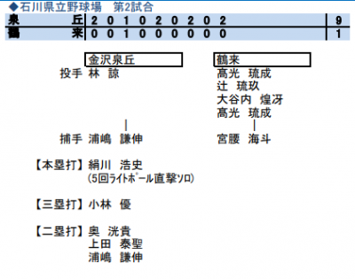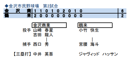 第153回北信越地区高等学校野球石川県大会 2回戦