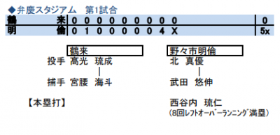 対戦した野々市明倫高校は無失策、1四球と非常に堅い守りが印象的でした。