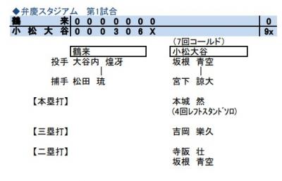 予選  本校 5 - 6x 大聖寺実業・小松市立(延長10回タイブレーク)