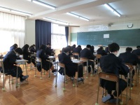 今日から3学期が始まりました。あいにくの天候でJRが運休となり、休校の学校も相次ぎましたが、本校は石川線が運行していたので通常通り実施できました。はじめに掃除をした後、校内放送による3学期始業式が行われ、校長先生の挨拶や保健厚生かからコロナウイルス感染拡大に伴う諸注意がありました。その後1,2年生は課題テスト、3年生は授業が始まりました。