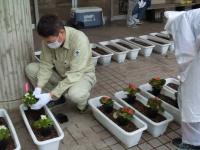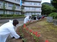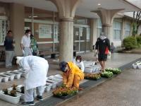 今日はあいにくの雨でしたがPTA役員の協力を得て白山市フラワーデーが行われました。いつもはボランティア委員や部活動有志も参加していますが、新型コロナウイルスの影響で規模を縮小し、PTA役員と担当教職員のみの作業となりました。