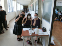 今日から全てが初めて尽くしの鶴翔祭が始まりました。模擬店の品物は配達、各催事は人数制限を設け、各クラスで昼食をとる時間のシフトも決め、ステージ発表は3年生のみ体育館で、1,2年生は各クラスでライブ配信を視聴など、今までにやったことのない新型コロナウイルス対策を施しての実施です。不自由な点はもちろんありますが、その中でも各クラスで趣向を凝らして頑張っていました。