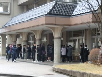 今日の正午に合格発表が行われ、本校を受検した中学生が発表を見に来ていました。密を防ぐために、3か所に合格者の受検番号を掲示しました。中には抱き合って喜ぶ姿も見られ、多くの生徒が合格の喜びを保護者や友人たちと分かち合っていました。