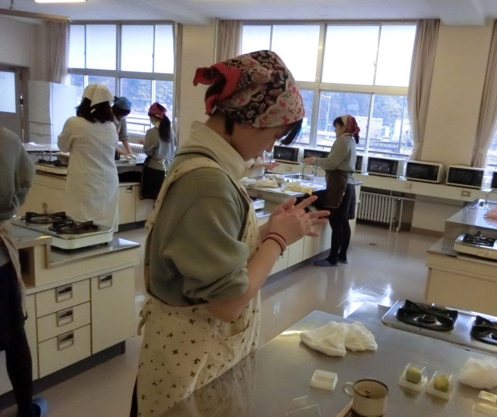 その後は生徒が自分で菓子を作りました。中々上手に餡をまとめられず苦労していましたが、得がたい体験でした。