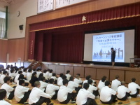 生徒からは次々と質問が飛び出し、社長さんはその一つひとつにわかりやすく真剣に答えてくださり、皆感心しきりでした。会社の経営者と直接お話ができる貴重な機会を得て、経営理念の一端を理解し、また、社長さんの人物の大きさに触れ、生徒それぞれの中に化学反応が起こったように見受けられました。