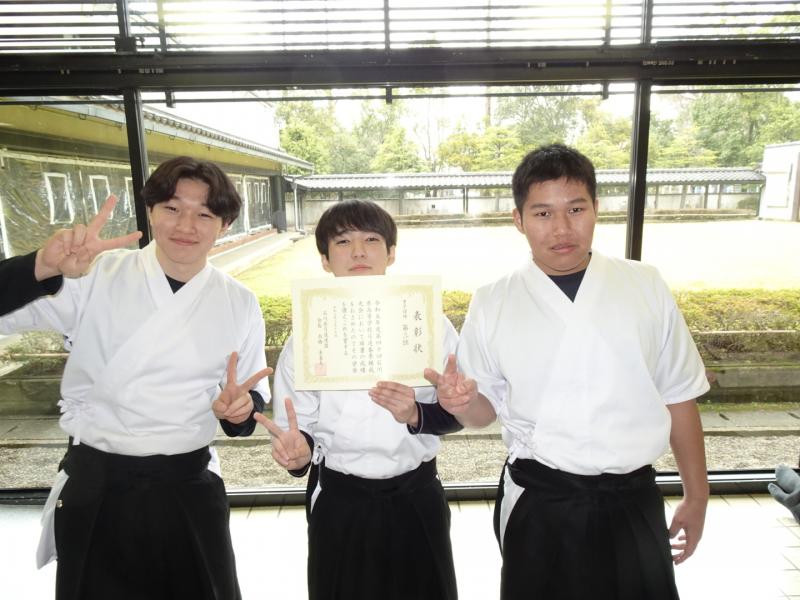 生憎の雨でしたが、結果高校生の部で杉山さん、中田くん、小林くんの3名が団体優勝、女子個人では2年生の西住さんが1位、杉山さんが2位、男子個人では中田くんが3位と好成績を残しました。