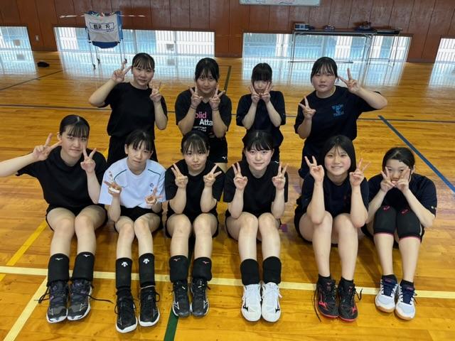 部員同士は、家族のように仲が良く、楽しく笑いが絶えない雰囲気の中で互いに声を掛け合い励まし合っているため、先輩後輩の関係も自然と深まります。また、練習中や外部での活動などでは、礼儀や挨拶、感謝を大切にして取り組んでいます。他校との合同練習や練習試合、日曜日にたまに行う練習会、春の遠足など、さまざまな活動を通して、私たちは絆を深めてきました。大会では、練習会や練習試合で交流のあったバレーボール部から応援してもらうこともあり、部員の励みになっていました。