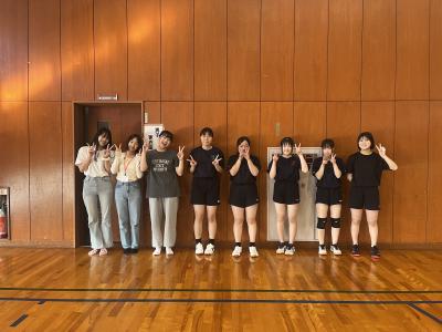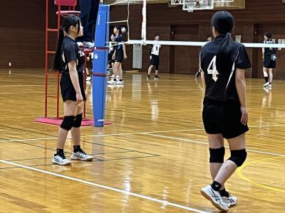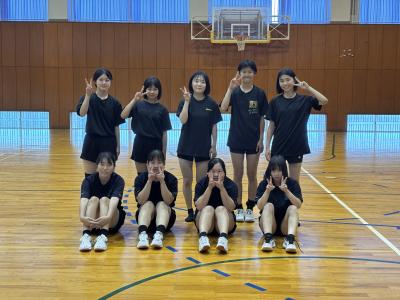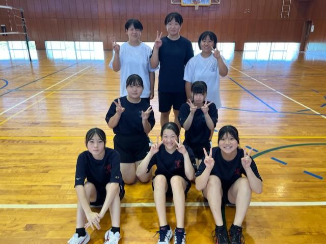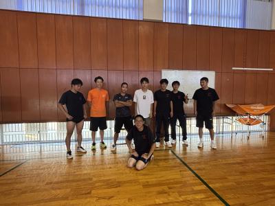 私たちバレーボール部は、三年生四名、二年生二名、一年生一名で活動していました。少人数で部員のほとんどが初心者ですが、基礎練習や筋力トレーニングを丁寧に行い、少しずつ技術や体力を身に付けてきました。顧問の先生は、一人ひとりと向き合い、チームをより良くするためにはどうすればいいのかを常に考えてくれています。そのお陰で、初心者でも安心して練習に取り組むことができます。