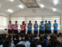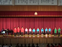 当日は「secret base~君がくれたもの~」「ルージュの伝言」「残酷な天使のテーゼ」「Blessing」の4曲を披露し、後半の2曲は先生方にもご協力いただきました。人数が少ないので声量には課題が残りましたが、多くの先生や生徒に「よかった」「上手かった」と言われ、某先生は「近年で一番上手いんじゃないか」とおっしゃってくださり、今後も楽しみにしていると声をかけてもらいました。マイナスなイメージばかり先行してしまう部員たちですが、お褒めの言葉は素直に受け取って、今後もますます練習に励んでもらいたいと思います。
