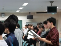 今年は混声合唱と女声合唱の2本立てとなり、本校は混声合唱として泉丘、二水、星稜高校と合わせた計4校で活動しています。他校の上手さに驚いていた本校の部員たちですが、なんとか食らいついている様子が伺えました。練習後はゲッソリしていましたが・・・。合宿後にはレベルアップした姿を期待したいと思います。