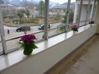 書道部の作品が花を引き立ててくれ