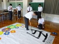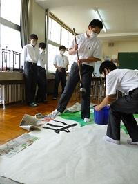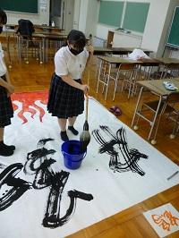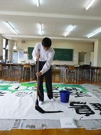 1年生は「大筆」で大きな作品を書くのが