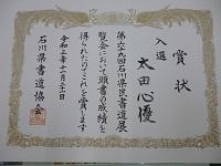 総文美術展(書道部門)の優秀賞の賞状が届く!