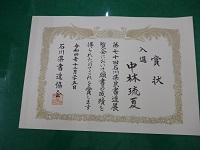 中川 和希 石川県 鶴来高 3年 特 選 (中央で表彰)