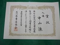 中川 和希 石川県 鶴来高 3年 特選 (中央で表彰)