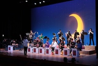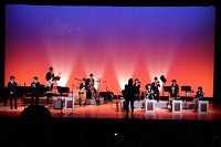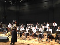 鶴来中学校吹奏楽部の単独ステージの合間に、まずはFのブルースの定番『Now's The Time』、そして私たちが愛してやまない名曲『Sing,Sing, Sing』の2曲を演奏いたしました。その後、合同練習をした『ルパン3世のテーマ』を聴いていただきました。