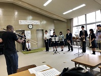 10月下旬に開催される鶴来中学校の文化祭に、本校ジャズバンド部がいっしょに演奏させていただけることになり、中間考査明けの本日夕方、合同練習をしに鶴来中学校へ伺いました。