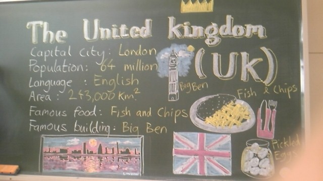 絵の得意なALTのジム先生と部員で、ロンドンを紹介する掲示物を作っています。準備する日がもうあまりないので急ピッチで描いています。多くの人に見てほしいと思います。