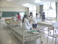 今日の福祉の授業はあじさいの郷の方を講師に招いて、入浴とレクリエーションについて実習しました。